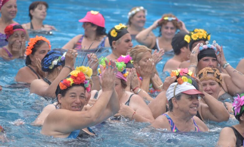 La disciplina de Acuagym, que años atrás comenzó como una propuesta orientada a adultos mayores, hoy convoca a mujeres de todas las edades que encuentran en esta actividad un espacio de ejercicio, contención y sociabilidad. Para esta edición la consigna fue “Floral”, por lo que muchas participantes lucieron vinchas, remeras, sombreros y accesorios decorados con flores, aportando color y alegría a la jornada.