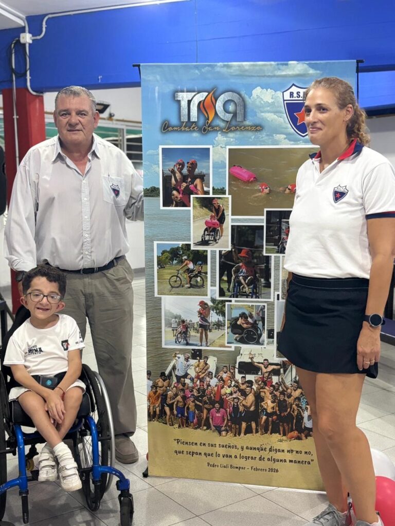 En la tardecita de este miércoles 18 de febrero, Pedro Bompar – el chico de 12 años de edad que padece osteogénesis imperfecta, patología conocida como «huesos de cristal» – e Isabel Castro – su entrenadora de natación en Red Star – recibieron de parte de El Club de la Ciudad un reconocimiento sorpresa en el quincho que el mismo posee en su sede de Riccheri y San Carlos. El tributo cobró la forma de un banner con numerosas fotos que reflejan la participación de Pedro e Isabel en el Tría Combate de San Lorenzo, el pasado día 1° de este mes; un hecho sencillamente extraordinario ya no sólo para el deporte de la región, sino para la vida cotidiana de la misma.