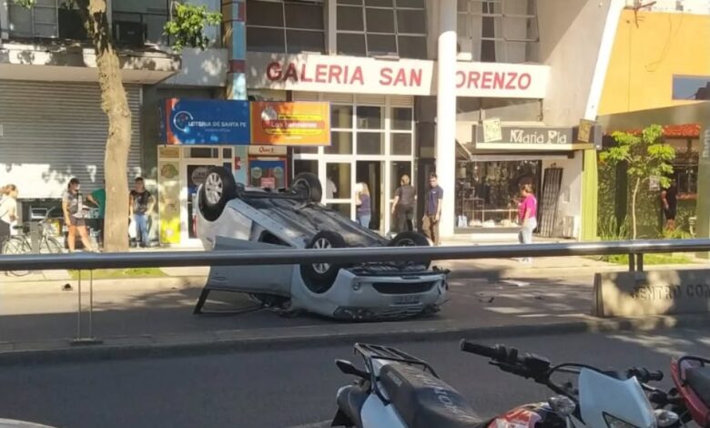 Sabado a la mañana: Volcó un auto en pleno centro de San Lorenzo