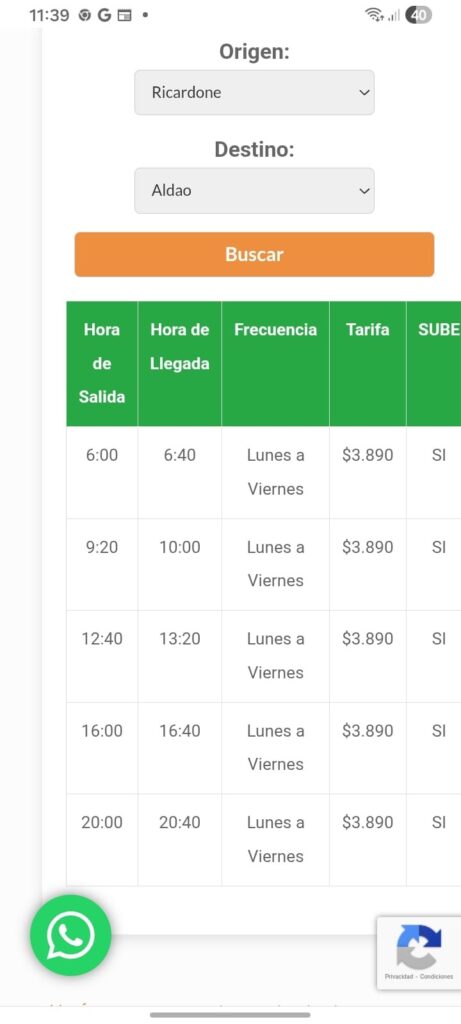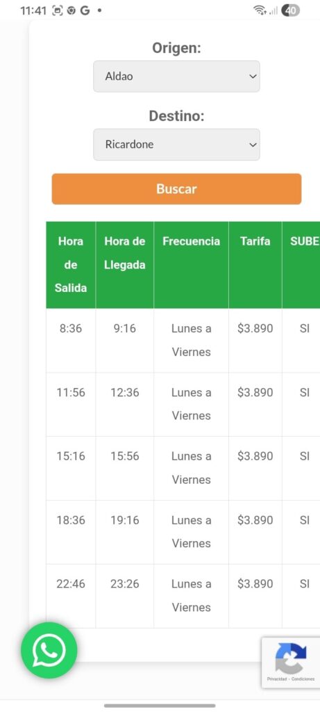 El servicio público es prestado por la empresa Tata Rápido. «El primer servicio rumbo a San Lorenzo, Puerto San Martín, Aldao, parte de Ricardone a las 6 AM. Pero en San Lorenzo, el ingreso escolar más temprano es a las 7, con lo que chicos y chicas quedan en la calle, como mínimo, más de media hora esperando para entrar, con el riesgo que eso conlleva», cuenta Florencia Sosa, madre de 2 hijos y que trabaja como asistente escolar reemplazante en varias instituciones del Cordón. «Luego de la pandemia, Tata reemplazó a Serodino, cuyo primer servicio salía a la hora 6.25 desde acá, dejándonos en San Lorenzo a eso de las 6:50. El horario cambió y nos resulta muy perjudicial: el que sigue al de las 6 AM parte a las 9:20», agrega.