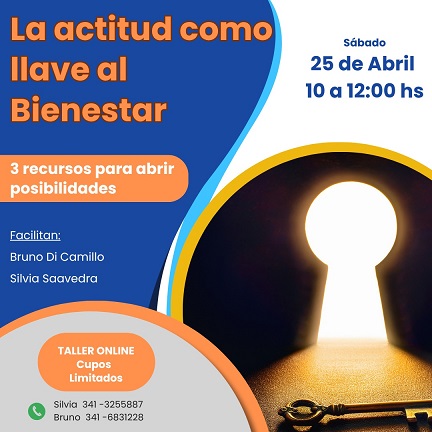 Este sábado 25 de abril a las 10 horas se realizará un taller virtual titulado “La actitud como llave de bienestar”, una propuesta orientada a brindar herramientas prácticas para mejorar la forma en que las personas interpretan y enfrentan las situaciones diarias. El encuentro será online, a través de la plataforma Google Meet, y tendrá una duración aproximada de dos horas y media.